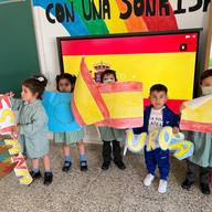 En el cole elegimos un país miembro de la UE cada curso y vimos características propias de cada uno tipo: bandera, cultura, capital, monumentos, gentilicio, idioma... Además claro, de las generales de la UE. El reparto quedó así: