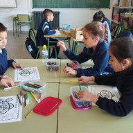 Para su celebración en el centro, el alumnado visionó vídeos sobre el origen de esta festividad y elaboró sus "poissons" (peces) para pegarlos a sus compañeros y profesores.
